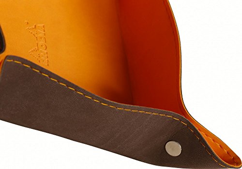 - ~En imitación de piel italiana de acabados cuidados: logotipo Rhodia embossé y de elegantes pespuntes sellier naranja.~